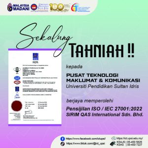 - Pensijilan ISO/IEC 27001:2022 SIRIM QAS International Sdn. Bhd.